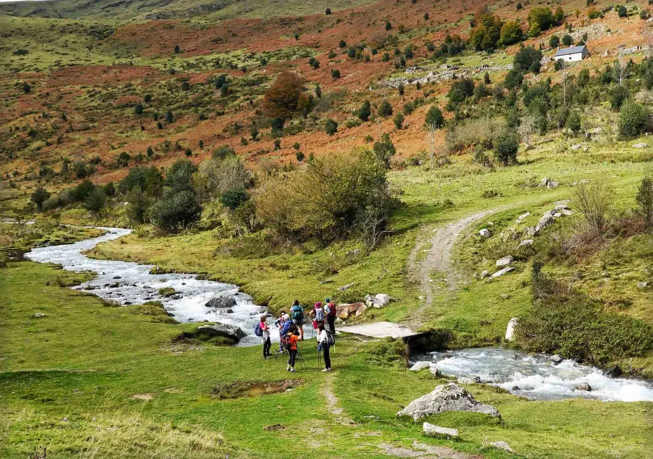 Sur nos cartes IGN un cheminement dessine une belle boucle en 8 depuis l’étroite vallée de la Séoube jusqu’au courtaou d’Eth Closes. En “passant par la moraine avec nos sabots” nous avons traversé toute cette variété de paysages qui ouvre sur la haute montagne. Ce fut une visite de l’automne pyrénéen, avec le soleil et la bonne humeur de l’équipe !