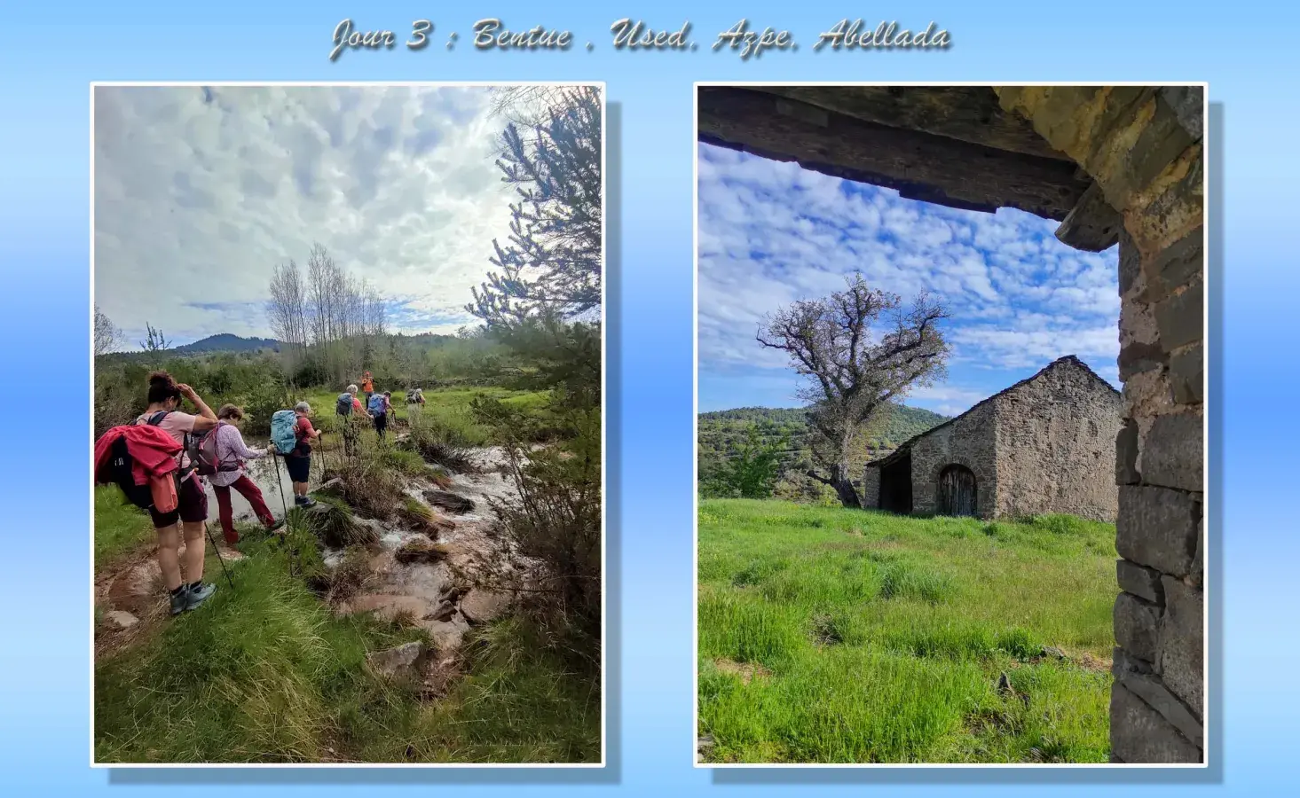 Un séjour fantastique en Sierra de Guara pour l'équipe numéro 1, à la découverte de toute la richesse Aragonaise. Paysages variés, fleurs colorées, vielles pierres et même rios à traverser! Quelques surprises se sont invitées: la pluie, l'orage et même la grêle, mais rien n'a pu entraver la bonne humeur de nos randonnées...