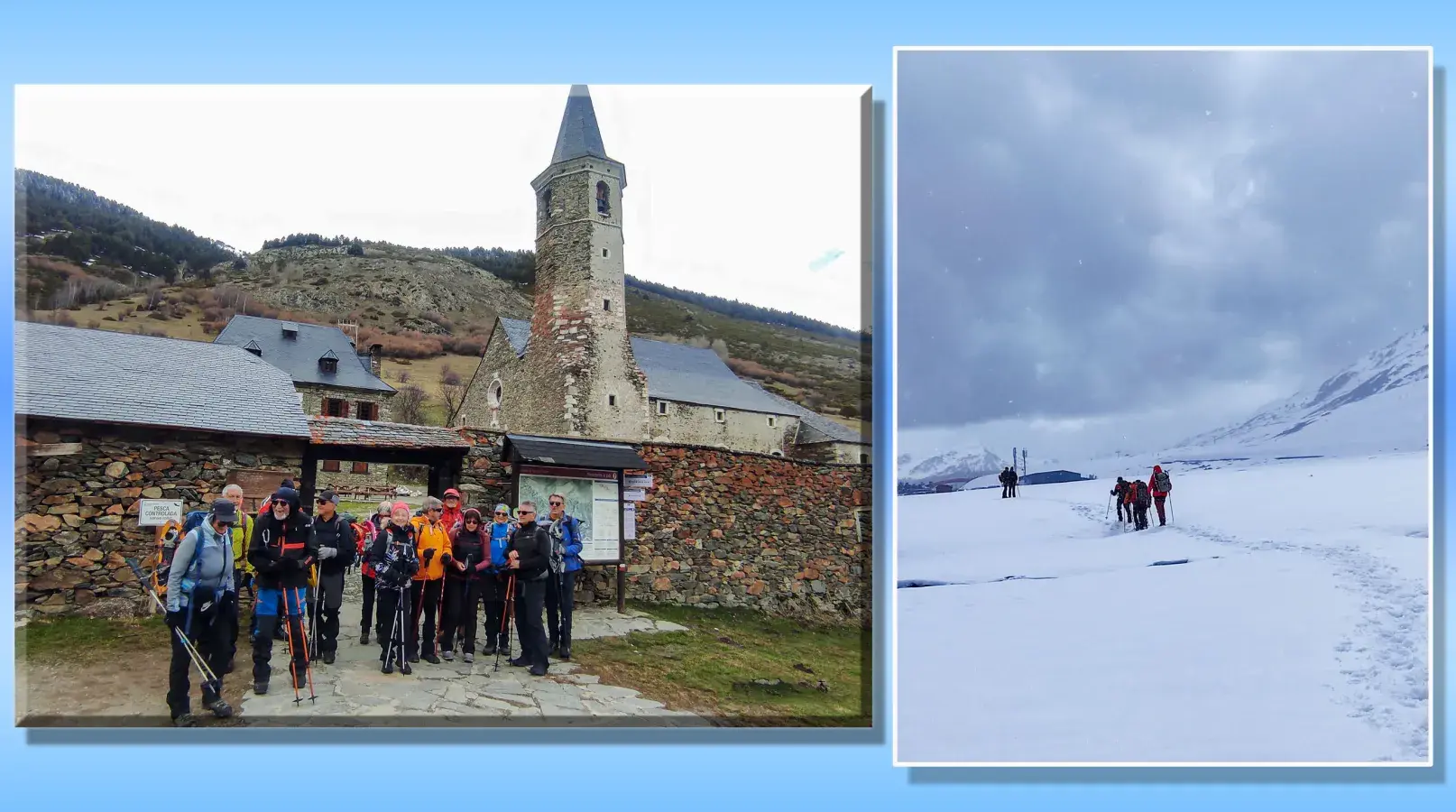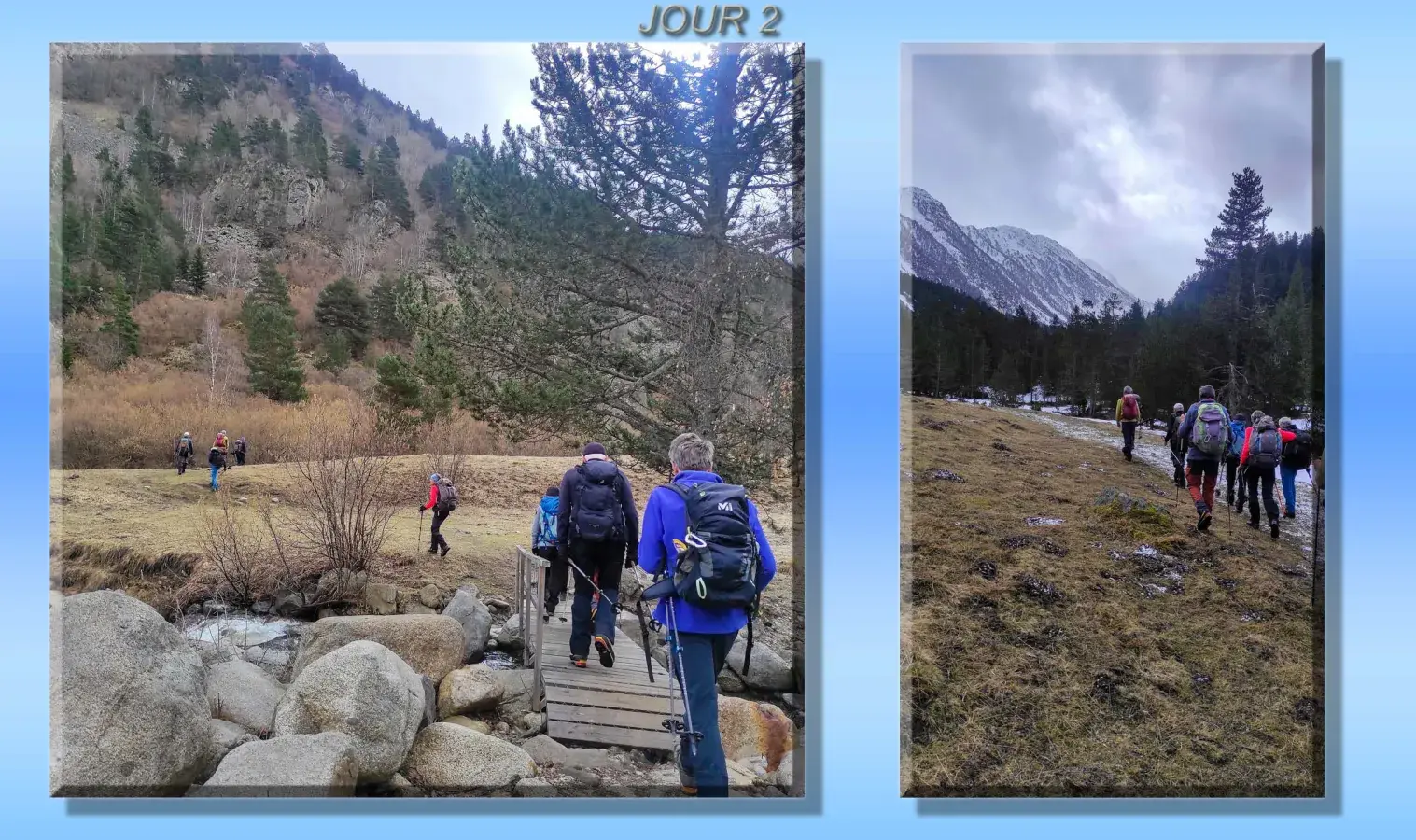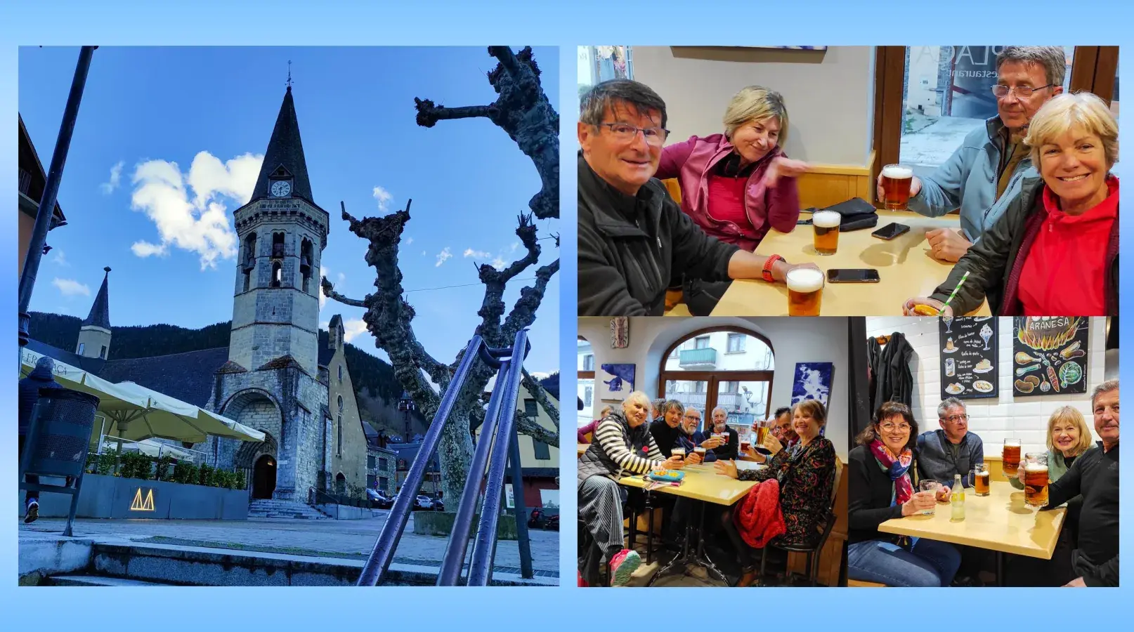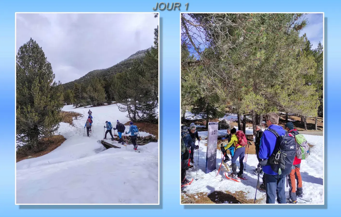 J-1 Séjour Raquettes au Val d'Aran - Pla de Beret a Santuario de Montgarri - Neige manquante sur une partie du parcours... Mais temps clément malgré une chute de neige sur le retour! Todo muy bien.... avec visite de Vielha en fin de journée après installation dans un superbe hôtel !