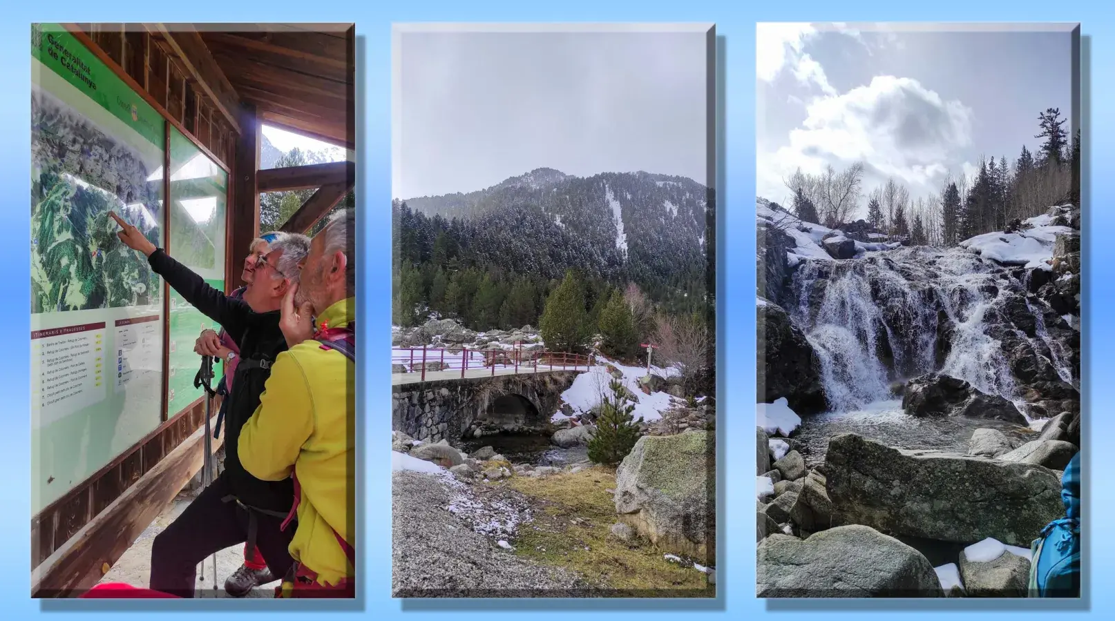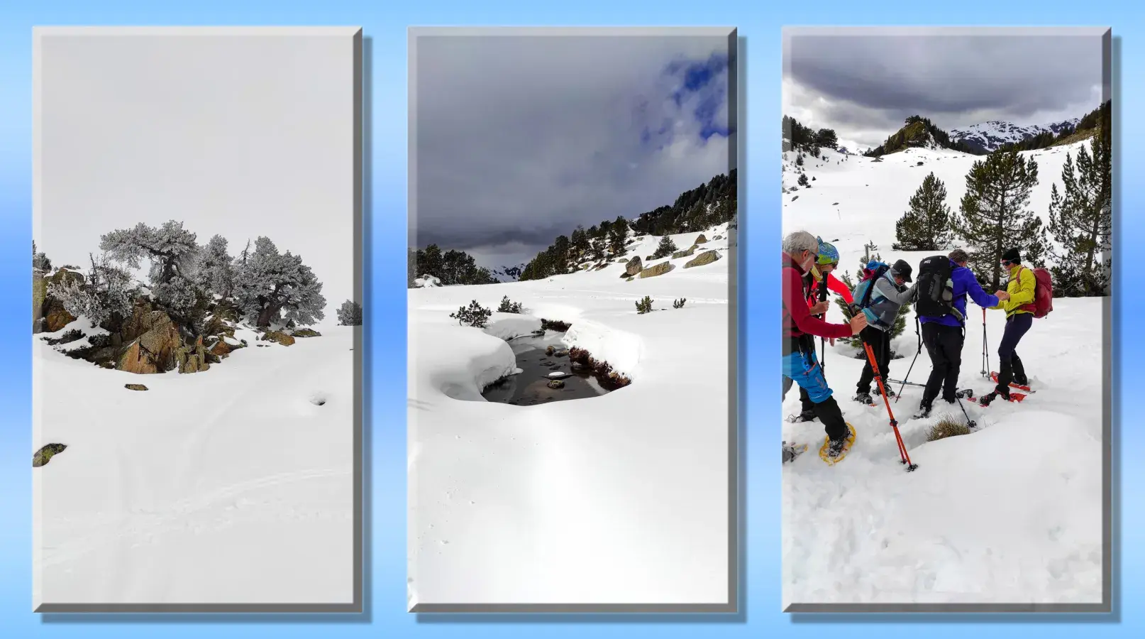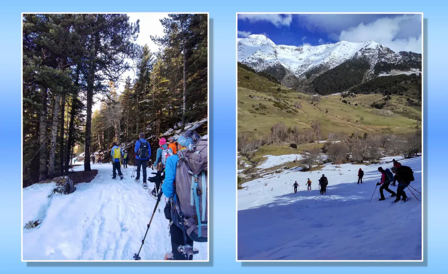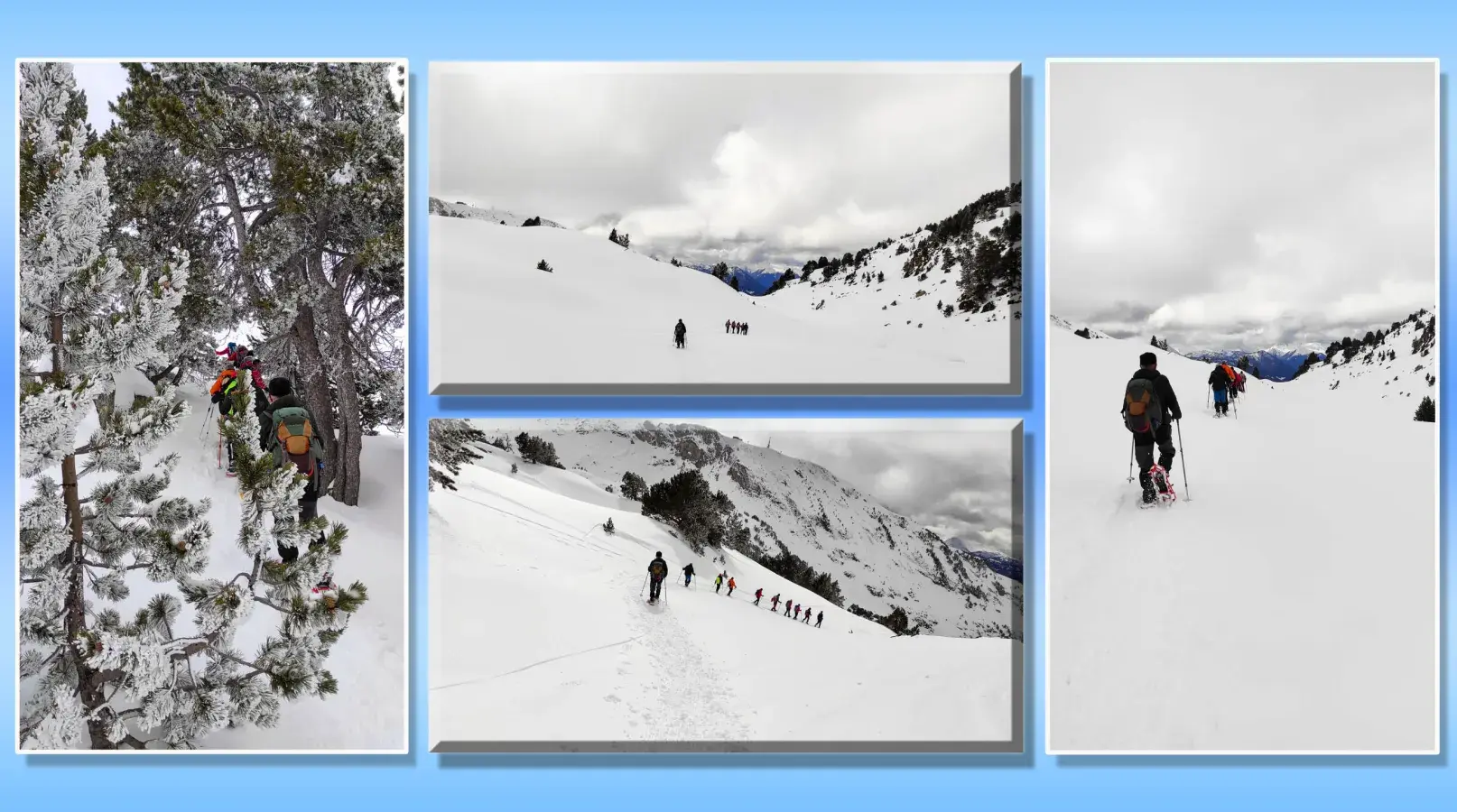 J-1 Séjour Raquettes au Val d'Aran - Pla de Beret a Santuario de Montgarri - Neige manquante sur une partie du parcours... Mais temps clément malgré une chute de neige sur le retour! Todo muy bien.... avec visite de Vielha en fin de journée après installation dans un superbe hôtel !