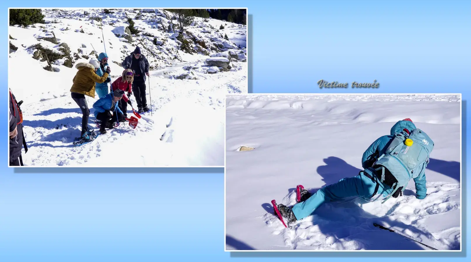Sous un beau soleil et un ciel bleu azur, à la recherche de victimes d'avalanche grâce à l'apprentissage du maniement des DVA